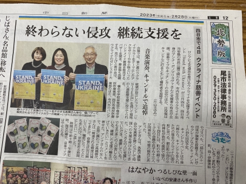 中日新聞 ウクライナ継続支援を 4日に四日市で慈善催し