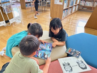 今週から学校の図書室が開館しています。いつも休み時間は「外で遊ぶのを楽しみにしている」という子がとても多いのですが、図書室で過ごす楽しさを知っている子も多いです。雨の日や、熱中症警戒のために外で遊べない日は、教室で過ごすのもいいですが、ぜひ図書室で本を手にしてほしいな、と思います。楽しい本たちがみんなの来館を待っています。