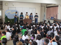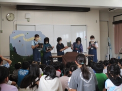 いよいよ今週いっぱいで、「図書館まつり」が終了します。たくさんご家庭ではご協力をいただきました。ありがとうございました。今日は、図書館まつりを締めくくるのにふさわしく、図書読み聞かせボランティアの「とちぼこ」さんに、20分休みに絵本の読み聞かせをしていただきました。たくさんの子どもたちが、とちぼこさんが読む絵本の世界に引き込まれていきました。6/28金曜日にも読み聞かせをしていただきます。楽しみです。