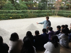 大徳寺大仙院では、枯山水の庭園の見学、座禅体験、抹茶体験などを行いました。