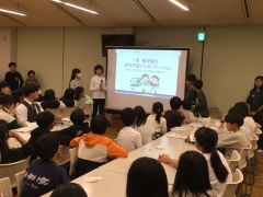 夕食後に、明日の班別学習について、事前学習で準備してきた成果をプレゼンテーションしました。それぞれの班で見学場所について調べ、目的をはっきりさせていました。明日の学習が楽しみです。