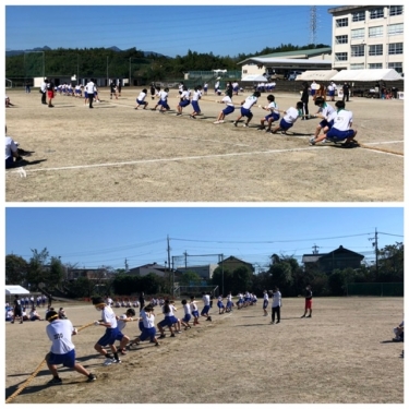 一つ目は、「引いて勝ち取れ!怪力一線」(綱引)の様子です。3年生による怪力勝負です。