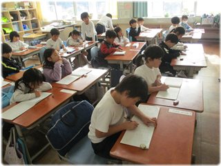 今日は、線香の煙がどのように動いていくかを、子どもたちが予想して考えました。予想は、聞いていてもとても面白かったです。しかも、自分の生活の経験から、理由を考えていました。