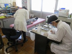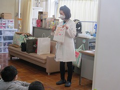 ①「あ」「い」「う」と声を出し、「べ」でしっかり声とともに舌を出します。