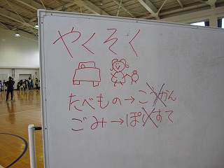 遠足は体を鍛えるために行くこと、行き帰りの道で交通安全に気を付けること、ごみはごみ袋に入れること、アレルギーの関係もあって食べ物の交換はしないことなどを確かめた後、歩き方の練習を行いました。