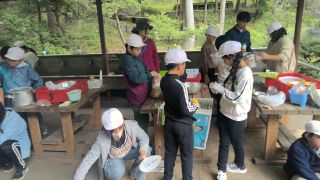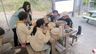 慣れない活動ながら、一生懸命みんなで、飯盒でご飯を炊き、カレーを作りました。