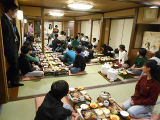 夕食会場で入館式を行い、その後、おいしい夕食をいただきました。