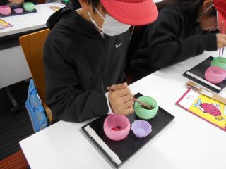 1年生が書写で漢字の書き方「折れ」「曲がり」「反り」のプリントをしていました。