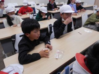 味の素では、ほんだしの製造過程を観て、鰹節削り体験や出汁あり・なしのみそ汁の味比べをさせていただきました。お土産に味の素の小瓶をいただきました。