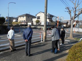 三重西地区連合自治会長にも立ち会いに来ていただき、四日市市の道路管理課や育ち支援課等、四日市北警察の方と、どのように横断歩道を設置できるかを協議しました。