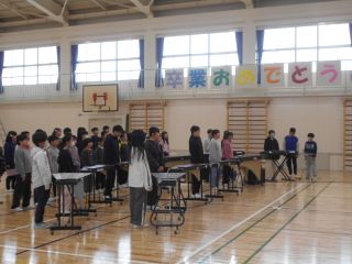 昨年、6年生が5年生の時に演奏した「威風堂々」を合奏し、「声の歌」を合唱しました。「威風堂々」では、途中にヴォカリーズを入れたり、「声の歌」ではソロを入れたりして、とても美しい音楽を6年生に贈りました。
