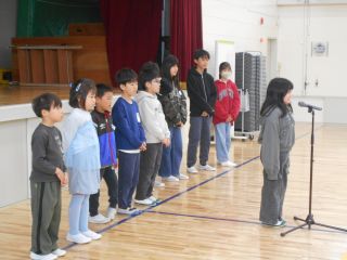途中詰まってしまう子がいましたが、すぐに聞いているたくさんの子どもたちから「がんばって!」と温かい声がかけられました。とても成長を感じた瞬間でした。