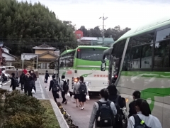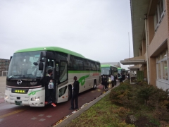16時55分、バスが学校へ到着しました。予定より約30分遅れて到着となりましたが、ケガなどもなく全員無事に帰ってきました。