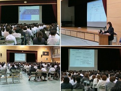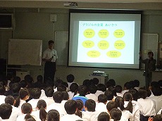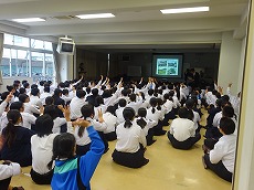 5,6限目1年生では人権学習の一環として、多文化共生乗り入れ授業を行いました。前半はJICA三重デスクの堤真人さんから「あなたの一歩が世界を変える~JICA海外協力隊で培ったボランティア精神~」というテーマでお話しいただきました。ご自身が経験されたことが今どのように活かされているかといったキャリア教育の視点にも触れていただきました。後半は本校職員の田中真弓先生からもお話をいただきました。日本で生活する外国の方の苦労についても触れていただき、多文化共生について考える機会になりました。お二方とも海外で数多くの経験をされており、クイズも交えてもらいながら子どもたちは楽しく学ぶことができました。