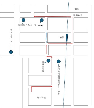 長年懸案だった一方通行の個所を泊駅方面に迂回します。