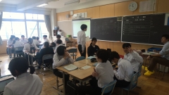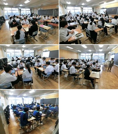 4月10日(金) 第3学年では初めての授業や学級活動などたくさんのことを行いました。◆学級活動(1・5・6限)1限目の学級活動では、クラスの交流を深める活動をしたり、自己紹介シートの作成を行ったりしました。5・6限目には学級目標について班で考え、今後のクラスの方向性について意思統一を図りました。画用紙での作成も始まりました。学級目標を考える際、最初は悩んでいる姿もありましたが、話したりインターネットで調べたりするうちにだんだんとアイデアが浮かんできて、話し合いが活発になっていました。