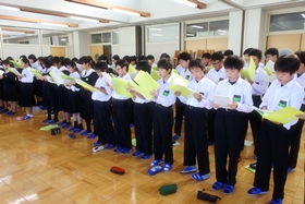 今日の6限目は先週に引き続き、学年合唱練習を行ないました。明日より文化祭練習日課となり、本格的に文化祭合唱コンクールに向けての練習が始まります。高いレベルの合唱は港中学校の伝統ですが、合唱のとりくみのねらいには、体育大会のとりくみと同じく、学級づくりや自主性の伸張も大きな要素として含まれます。クラスや学年で話し合いながらより高いものを目指して頑張っていく中で、より集団を進歩させることができます。放課後の割り当て練習だけでなく、学活や総合の時間も積極的に使いながら集中的にとりくんでいきたいと思います。