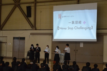今日の1限目には、新入生と2・3年生の「対面式」がありました。拍手につつまれながら、新入生はうれしそうに入場しました。そのあと、港中ならではの「みなトーク」の説明を生徒会本部役員が行いました。みんなで楽しくトークをする時間の説明です。お互いを知りあえるチャンスですね。