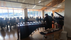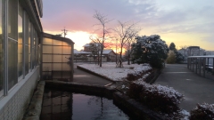 1日中雪が降りしきるなか、各小学校に出発するときのみ雪が止みました。皆さんの日ごろの行いが良いからでしょうか。