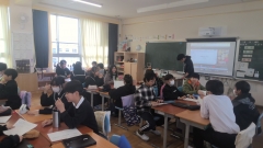 自転車を漕いでそれぞれの小学校に到着したら司会として小学生の意見を聞いたり、自ら進んで話をしに行ったりと上級生としてグループをまとめようとする姿勢が様々なグループで見られました。