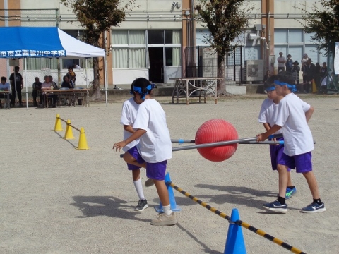 AB組のみなさん、「100m走」「大玉ころがし」「くぐってとんで」に出場しました。どの種目にも全力で取り組み、いい顔がずらり。