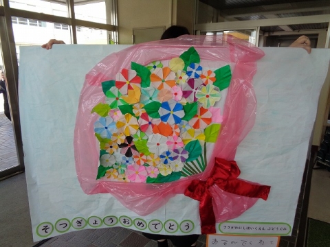 毎年度、卒業式前に笹川西保育園の園児のみなさんが、卒業生(3年生)にメッセージ入りの作品をプレゼントしてくれます。