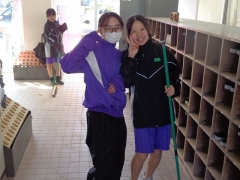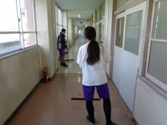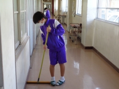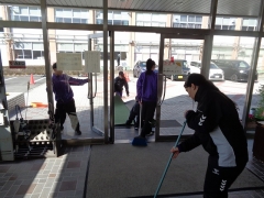 1年生のみなさんは、教室や廊下、昇降口、ピロティ、駐車場などの掃除、そしてグラウンドの駐車場設営担当。