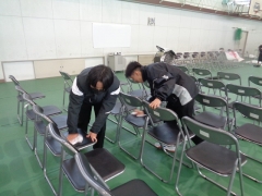 2年生のみなさんは、体育館で式場の最終設営を担当。