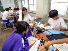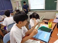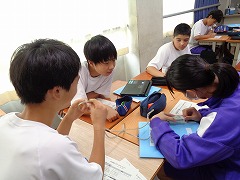今日の2年生技術科では、電気コードを使って「電気をショートさせないための工夫」というめあてで、班で調べ学習をしました。普段何気なく使用している電気コードでも、ちゃんと安全性を確かめることができるマークが使われていることを発見でいました。