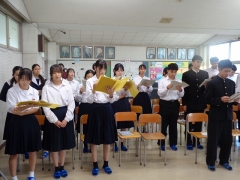 6限後にもかかわらず、1年生のみなさん、元気に笑顔で歌ってます。