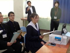 3年生8人が、現地の9人に自己紹介をしたり質問したり。。。
