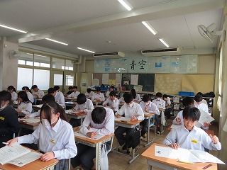 2月18日(水)から始まった1・2年生の「学年末テスト」。本日2月20日(金)で3日間の最終日を迎えました。写真の様子は3限目の1年生のテストの様子と4限目の2年生のテストの様子です。