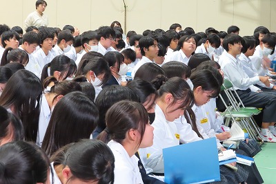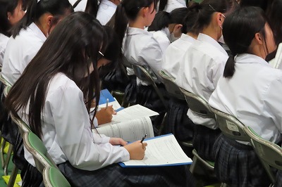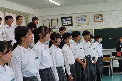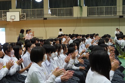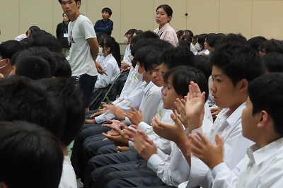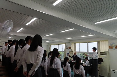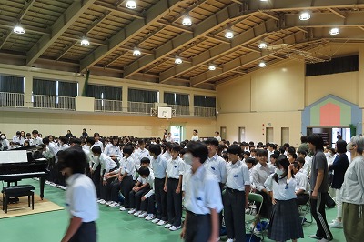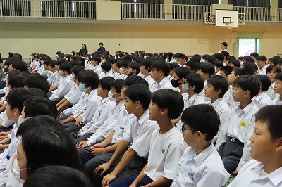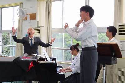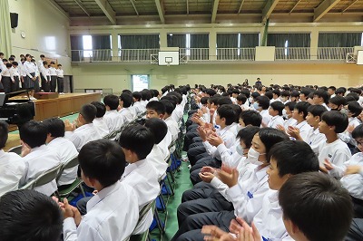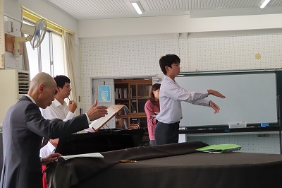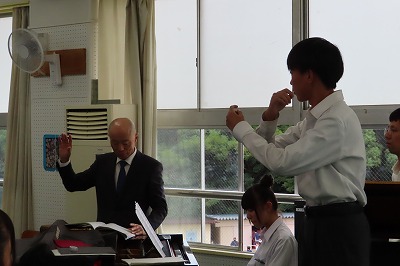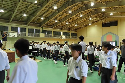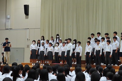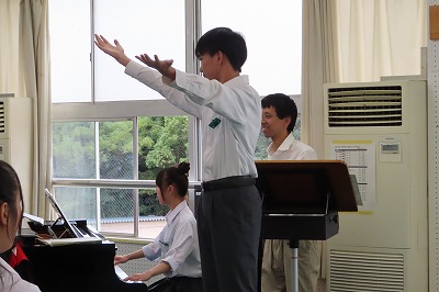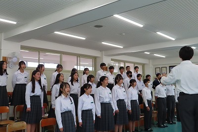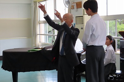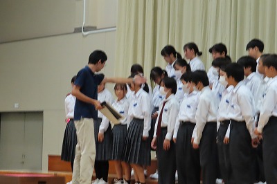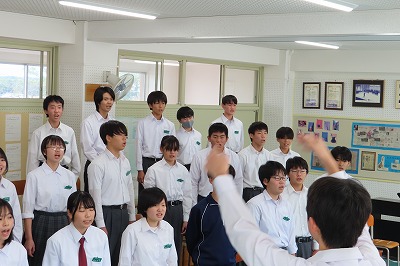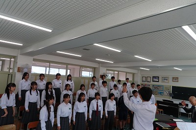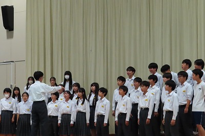 3年生のすべてのクラスが、本日までに一海先生の合唱指導を受けました。合唱の技術はもちろんのこと、合唱に取り組む姿勢や合唱曲の情景を考えながらうたうことの大切さを学んでくれたと思います。2日間にわたる合唱指導、本当にありがとうございました。文化祭合唱コンクール当日は、一海先生に合唱審査をお願いしました。あらためてよろしくお願いいたします。【次の写真は5限目の3年3組の一海先生の合唱指導の様子から】