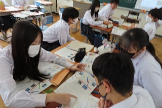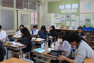 3年生の強み!3年生のすべてのクラスにおいて、班の中で一人一人が自分の意見や考えを出し合うことができること。そして、その意見を一人一人がしっかりと話を聴くことが出来ること。その強みは、最終日の3年1組の中にもしっかりと活かされていました。何より3年1組のあたたかい雰囲気の中、議論し合うことが楽しそう!1人1人にしっかりと居場所があるクラスだと感じました。