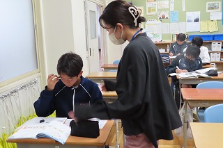 そこには、小寺先生が机間巡視を丁寧に行いながら、子どもたちが課題につまずいた時には、しっかりと寄り添いながら丁寧な関わりをしてくれていました。