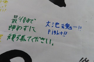 応援旗にメッセージとして書かれている内容はどれも、あたたかくて、優しくて、元気をもらえるような、走る選手が前をしっかりと向いて走れるように背中を優しく押してくれるようなメッセージばかりです。本当に嬉しい限りです。大池中学校が一体となって男子駅伝チームを応援してくれている雰囲気をしっかりと感じ取れる取り組みとなりました!大池中学校のみなさん!本当にありがとう!ステキなメッセージは必ず選手の心に届きますよ!