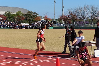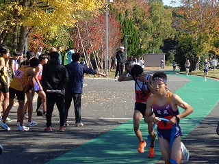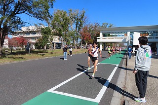 3年生が4名、1年生が2名の6人がすべて3,0Kmの6区間を全力でタスキをつないでくれました。1人1人が自分の区間を責任を持って、一生懸命にタスキを最後までつなぎました。第1区のエース区間から3年生の石垣さんが先頭と47秒差の大健闘で2区の1年生黒田さんにタスキをつなぎました。はじめての出場でも粘り強く3区の3年生青木さんにタスキがつながりました。三泗駅伝でもエース区間の3区を走り、県大会出場に大きく貢献してくれた3年生です。しっかりと走り切って第4区の1年生青木さんにきょうだいでのタスキリレー。はじめての出場も区間10位の選手と26秒差で大健闘!第5区の3年生小林さんも初出場でしたが、後半に3人を抜き去りアンカーの第6区尾﨑さんへ。尾﨑さんは1つずつ順位をあげ、区間11位の力走で第23位でゴールをしました!6名の選手と区間サポートにまわってくれた1年生2名が全力で頑張ってくれました!