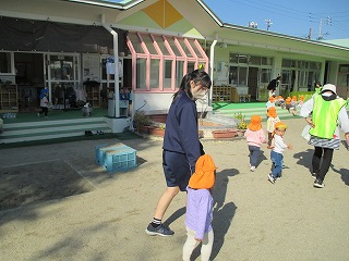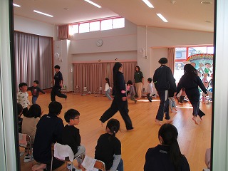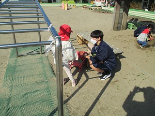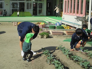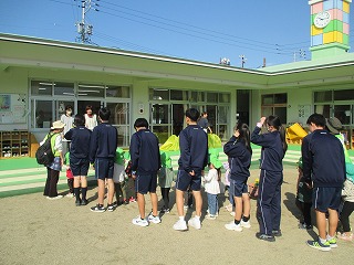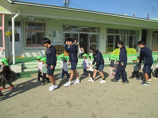 そんな3年生の子どもたちの姿から、幼児たちも笑顔いっぱいに嬉しそうに中学生のお兄ちゃん・お姉ちゃんに甘えてきます。このような姿からも、3年2組の子どもたちの優しさや、素直さが表れているように思います。