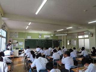 大池中学校で今年度はじめて実施した「法教育の出前授業」が14日(金)の3年1組で最終日を迎えました。津地方検察庁から、3年生5クラス分(5時間分)の授業に対して、毎時間2~3名の検察官や検察事務官に講師先生としてお越しいただきました。