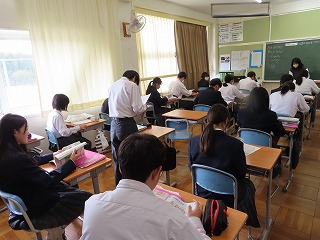 2限目から6限目は、篠田様に3年生の各クラスに入っていただき、実際に面接の練習をしました。