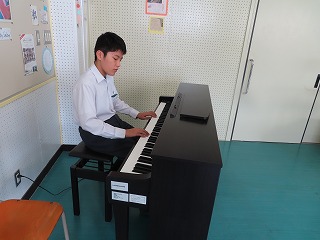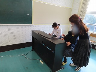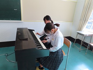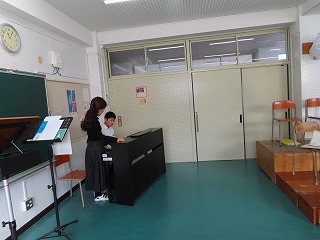 校舎南側から太陽のあたたかな日差しが差し込み、その日差しの暖かさとぬくもりを感じられる中、写真でも表れているように、音楽授業も授業担当の先生が常に子どもたちの「できるようになりたい」「両手で弾けるようになりたい」に寄り添いながらの子どもたちと一緒に授業を創り上げる授業が継続されています。