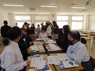 今日のメリノール学院通信制課程では、「クリスマスパーティー SHOW TIME」として、チャレンジルームに通う子どもたちを招待していただきました。先輩たちの「歌による歓迎」を受けた子どもたち。そして、3回目の交流会ということで顔なじみになった先輩たちと「教室の飾りつけをしよう!」と笑顔で優しく迎え入れてくれました。