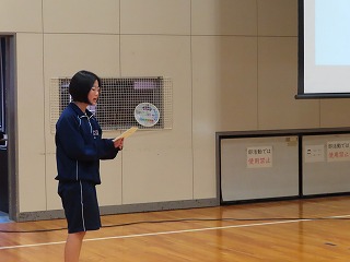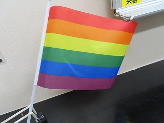 一番最後に紹介したのは、講師の山口 颯一さんに大池中学校を代表してにいただいた大切な『レインボーフラッグ』です。レインボーフラッグとは、LGBTQ₊の尊厳と連帯、社会運動のシンボル。1978年にサンフランシスコのアーティストであるギルバート・ベイカーさんがデザインし、「Gay Freedom Day Parade」で使用されたものが始まりと言われています。性のあり方は多様で、グラデーションとなっているため、美しい虹の色で表現されています。6色のレインボーフラッグはLGBTQ₊を象徴する旗なのです。準備がそろい次第、大池中学校でも、全校生徒の目に届くところに紹介したいと思います。