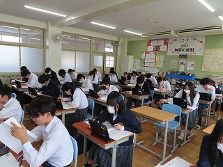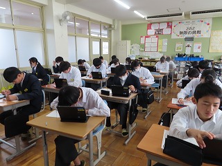 【写真は2年生すべてのクラスでの「みえスタ」受験の様子から】