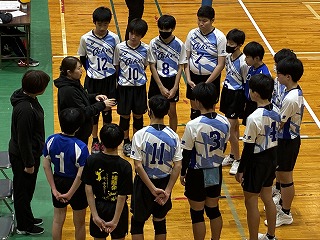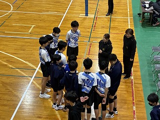 大雪が心配された週末1月24日(土)~25日(日)の両日、津市立久居中学校体育館を中心として「第54回三重県中学生バレーボール新人大会」が開催されました。24日(土)のは大池中学校男子バレーボール部が2回戦から出場をしました。チーム監督が体調を崩し、急遽チーム監督を女子部顧問に依頼し、男子バレーボール部の三重県大会の指揮をとってもらいました!お休みしている顧問にも良いニュースを伝えようと、男子バレーボール部チーム一丸となって頑張りました。