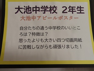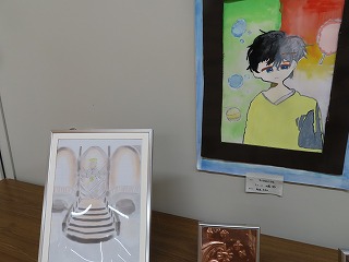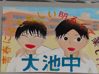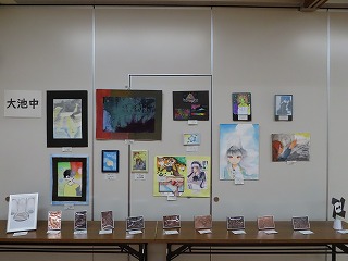 大池中学校からは、3年生「自画像」、2年生「大池中学校アピールポスター」、1年生は「粘土でつくるお弁当」。3年生は12名、2年生は8名、1年生は10名の30名の心のこもった代表作品が大池中学校代表として出展されました。