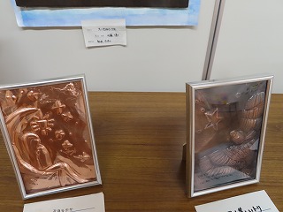 また、同会場では、三泗地区の中学校美術部展も開催されています。30回を迎える美術部展です。日ごろの美術部での活動の成果がしっかりと表れている創作作品がいっぱい。2年生・1年生部員の一人一人の個性が表現されている作品ばかりです。美術部のみなさんの作品の世界にお越しください!