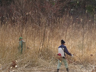 参加された皆さんの中には、大池中学校の保護者のみなさんも参加していただいていました。校長も参加させてもらいました。とっても寒い日になりましたが、湿地一面の草を刈っている(草刈り機にて)と大汗が出るくらいでした。運動不足解消にもよかったです。そして、少しでも貴重な植物の生息を守る活動に貢献できた達成感もありました。