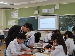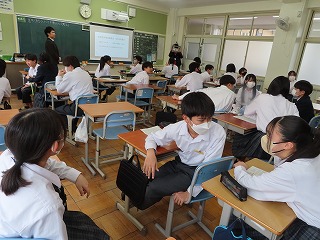 四日市市教育委員会人権・同和教育課から指導主事先生を指導・助言者として来校をいただきました。指導主事には、授業を参観いただくだけではなく、人権学習を2年生で進めていくための事前指導等に助言をいただきました。