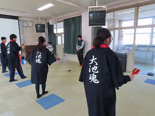 大池中学校では現在、2月18日(水)から始まる「学年末テスト」に向けてのテスト期間となっています。しかし、この大切な大会と重なっているため、校長許可のもと、保護者者の皆さまからの参加同意をいただいた2年生の子どもたち4名と1年生の子どもたち2名が団体戦メンバーとして大会出場をしました。大変寒さの厳しい中、保護者の皆さまも応援に駆けつけていただき、熱心に応援を頂きましたことにお礼申し上げます。